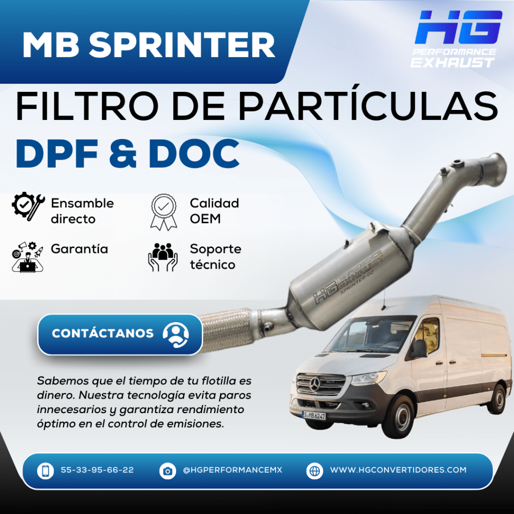 Uno de los mayores retos de las flotillas de transporte es el tiempo muerto cuando los filtros de partículas (DPF) requieren limpieza o sustitución. En HG Performance hemos desarrollado una solución directa para Sprinter 2017–2023: DPF y DOC de calidad OEM listos para instalar, sin detener tu operación.